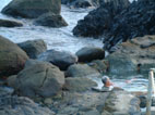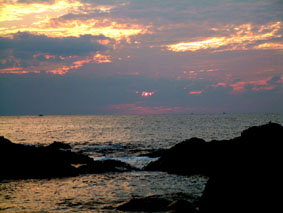 憧れの屋久島に午後二時十分に到着 昼食抜きの旅になり 食事の旨い店を探してレンタカーで77号線を西に走る 最初の目的の店を通り越し しばらく走ると ひらの と言う風格のある のれんが下がる店を見つけた 店の中は和風調の綺麗な作りで 又 案内してくれたお嬢様が優しそうな笑顔と言葉使いに満足の食事となる お任せのフルコースは15品の屋久島ならでの料理で味も量も150%満足 料金も2000円と本当に安い(^_^) 帰りにはお嬢さんの写真を記念に撮り モッチョム岳を眺めて店を後にした ![]() しばらく車を西に走らせるとトローキの滝に着き探索をする事になる 南国独特の鬱蒼と生い茂る道を下る 滝は勢いのある流れで 海中に直接流れ落ちる姿は 本土には無く珍しい滝で 暫くの間流れを見守る ![]() やはり島全体が急斜面の1000mを越える山が峰を連ねて居るためか滝が多い様である 西に30分位進むと 大川(おおこ)の滝に着く 滝の落差は?数十メイトルと白飛沫を上げて落ちる様はスケールの違いが解る 滝では記念写真や水に手を入れて感触を楽しみ 時間を過ごす事が出来た ![]() 今日の予定になってる最後の名所 海中温泉に日の落ちる前に行くため東に戻る 海中温泉には すでに入浴している 人達がおり 私達は挨拶を交わしながら温泉の温度や 珍しい海底から沸き出す温泉に触れる事が出来 夕暮れの 日の入る海岸を眺めて宿に向かう 十名の面々でした。 |