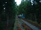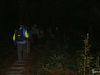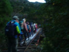 ヘッドライトの灯りを頼りに登山道を進む トロッコの線路がどうやら登山道に成ってるようだ