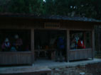 小杉谷事業所の跡に 休憩所があり 此処で朝食をとる 朝食はホテルで用意していただいた幕の内弁当で森林浴の