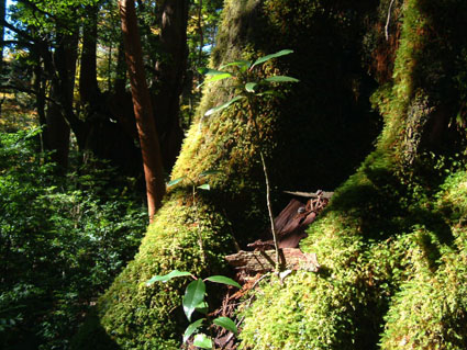 次に現れた途轍もない大杉は翁杉で ツルに身をまかせた堂々の巨体である そしてウイルソン株が現れる