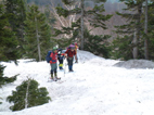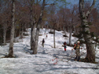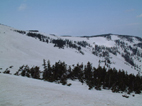 帰りは同じく滝沢登山口へ 雪の斜面を滑る様におり早い早い 途中に山菜を採りながらの下山にも係わらず