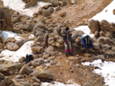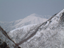 日当たりの良い場所で休憩 していると剣が峰の急な雪面を4人のパーテーが朝日岳方面より