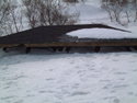 AM9:30峠の茶やに着く 茶やの前に在る小屋は屋根まで埋まっている 鬼面山を見ながら登ること50分