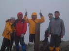 解らず通過したようだ(-_-) AM9:30御西小屋に到着 相変わらずガスで視界は10m位 山頂に行き