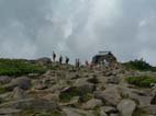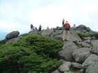 頂上には神社が祭られ多くの人がお参りをしてる もうすぐ西吾妻小屋に着く 途中の湿原にはキキョウが