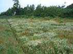 リフトの下りには白い お花が一面に咲き誇り止まることのないリフトが恨めしい 一気にガスが迫る