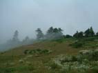 山頂の黒豆の木は 実が紫色になってきた(*^_^*)休んでいるとガスが立ちこめて来たので下山する