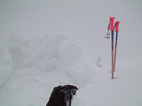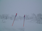 高度計と磁石を使い山頂へ2時間ほど登るが雪面の凸凹が判断出来ず悪戦苦闘