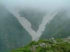 時折切れるガスの中 斉藤Fさんが 大朝日小屋を発見 感激(^o^)をした PM2:40銀玉水に到着(曇り)