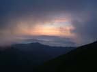 PM6:10山頂 しばらく待つと時折日差しが出る 町子さんにブロッケンが現れるかもと話をすると 何と一気に