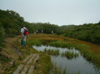 PM1:45到着 休憩をする そこより稜線から離れ左に入ると湿原のある草原に出る 沼を右に見て下ると