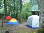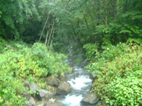 テント場に流れ込み昨夜の雨量を伺うことが出来た 静かなブナ林が 朝食の煮込みうどんの味を引き立て