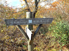 山頂の道標が 貫禄を木肌に出し 待ちかまいて居る |