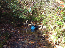 | 山頂から下り分岐点を過ぎれば 緩やかな下り道に成る 窪んだ場所に間もなく着く 其処には美味しい湧き水がこんこんと出てる 渇いた喉を潤すには贅沢なくらいだ |