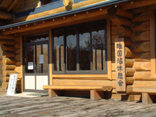 小さな階段を登ると休憩宿舎が在る ログハウスの贅沢な作りだ 出来たばかりらしく 真新しい木の臭いがする 回りには芝生が張られて大庭園を見てる様だ |