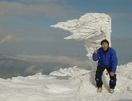 安達太良山の山頂が雲間に浮かぶ光景を見ながら 箕輪山に向かう 良い天候だ!!今日は初山滑りとShoさんとSEIがご機嫌の車中です AM8:50箕輪スキー場に着き 早々オープンしてる一機のリフトにて 中腹まで移動AM9:15登り始める ハエマツやシャクナゲ 灌木が雪の上の出てるため歩きにくい 汗が湧き出る熱い シャツ姿で登る 風が心地よくなびく スキーにシールを付けて歩くのは今シーズン初めてである 急斜面では悪戦苦闘シールが利かない Shoさんの幅広シールは威力を発揮がんがん登って行く 私も同じシールをと密かに!!! 山頂に近づくに連れて斜度がきつくなる 山頂近くに在る大きな岩が雪の造形で解る 間もなく山頂だ 登り初めて二時間 道標がカチカチに氷付いた山頂に着く 全展望の山頂は澄み切った空間に吾妻の山並み 近くには鉄山や吾妻小富士・真っ白に化粧した一切経山が 冬の山の飾り付けてをしてる途中にも見えた 山頂ではShoさんとSEIがビールでカンパイ そしてウイスキーをオンザロックこれが たまらないんだな〜〜〜あ 風紋や道標の氷の成長を見て 風向きは東からかな いや冬は西からでしょうと でも氷の成長を見ると東かなと 二人の話は弾む 一時間位居ただろうか そろそろ下山しましょうと準備に係る 青空の下 氷が光線を放し煌めく 流れる雲は爽やかに 冬の垣間にもこんな素晴らしい時間が在る事を知ることが出来た 飛び出た木に足を取られて転ぶ オート 大きな声 大丈夫と気遣う 二人は雪と戯れてる様だ 間もなくゲレンデに着くと言う所でアクシデントが起きる SEIが転倒 スキーが外れなくて足が反対の方向に向いたままだ 痛い う〜〜ん しばらく我慢してると痛みが和らぐ 大丈夫と 気を取り直して滑降 長いゲレンデを滑り ひと休憩とレストハウスに行き 休んでると足の痛みが (>_<) Shoさん今日は帰りましょうとSEI 早々と帰路に就く 12月2日 仕事でいわき市に向かいAM8:30出発 午前中に役所に届ける書類があり 足の痛みをこらいての仕事 午後 郡山に在る整形外科に行き診断 左足膝の靱帯が切れてると先生に聞き アチャーと叫ぶ 太股から足首までギブスで固定 三週間はずせないと言われる 早く治して山スキーに行くぞーと懲りないSEIである |
