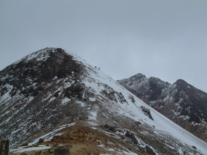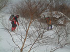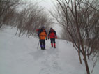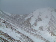 ![]() 那須岳 平成14年2月23日 うっすらとガスが架かる山頂を眺め 大丸温泉 駐車場より 圧雪されたトレースの上をアイゼンを付けて登る 峠の茶屋までは時折膝まで抜ける道 風通しの良い稜線に出ると殆ど雪は無い 峰の茶屋を前方に見て突風を抱き どんどん登る アクシデントを興しながら コース 大丸温泉駐車場AM7:45〜峠の茶屋AM8:45〜 峰の茶屋10:00〜朝日岳AM11:45〜 峰の茶屋休憩(12:25〜12:40) 茶臼岳PM1:05〜峰の茶PM1:40〜 大丸温泉駐車場PM3:05 |