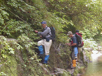 ![]() ![]() SU−・TETU・KUNI・Yoー・NOBU・Yabuさん 石 標 ![]() 滑と小さな滝と渓谷 ![]() トッカケの滝 ![]() 近くで見ると迫力が在る流れです 右に左に巻き込むような滝 ? ![]() 梯子を登り渓谷の変化を楽しんで進むと大きな滝が ? 渓谷に張られた鎖 慎重に足場を確認して進む ![]() 岩は滑りやすく気を抜くことが出来ない 次のページへ |