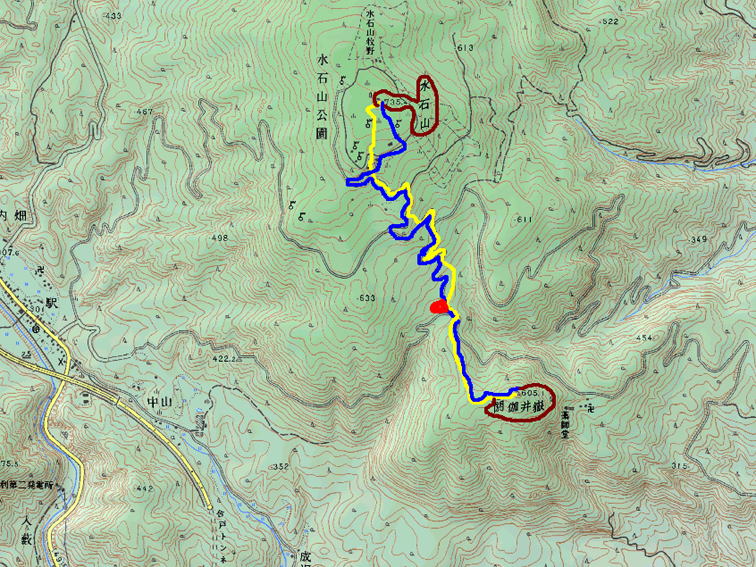 赤のマークは駐車した所
