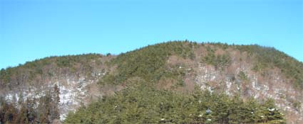 日隠山の山頂は稜線の陰で望む事は出来ない(ロマン広場より)