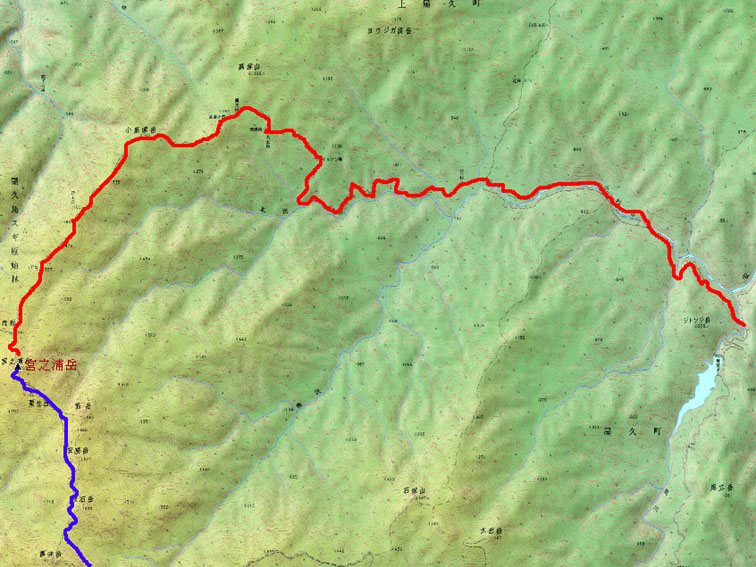 今回のコース 青〜赤が縦走コース(淀川小屋より13時間) 淀川登山口〜淀川小屋(泊まり)〜花之江河〜宮乃浦岳〜小高塚山〜縄文杉〜 三代杉〜小杉谷事業所跡〜荒川登山口