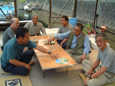 勢い付くメンバー安房川に浮かぶ屋形船に移り芋焼酎をあおる