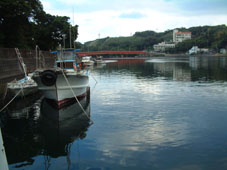 民宿 水明荘 (宮乃浦岳往復組) 屋形船 民宿前の安房川