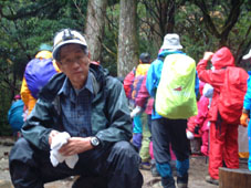 登山口でSEI・OKA・OHGA・TETU AM6:20 首を傾げる会長(淀川小屋前で)