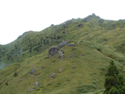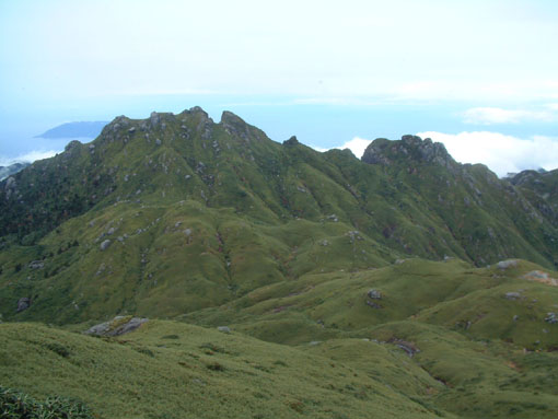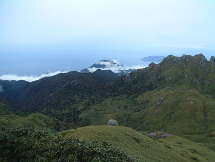 太平洋と種子島が見えるコル 間もなく山頂 国割岳(1323m)の尖り