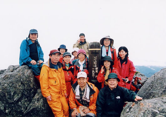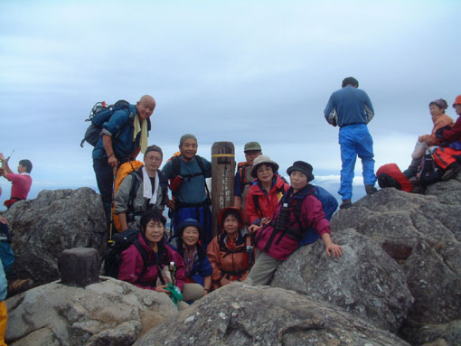 宮之浦岳山頂で (縦走組 Joeさん提供)