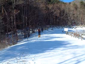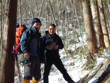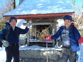 蓬田岳の稜線 今回のコース ![]() 抜ける様な素晴らしい透明度の青空(登山口より) 蓬田岳のピークは稜線の陰で見えない 新雪を踏みしめて歩く音がキュキュと聞こえる ![]() ホワイトボードに書いたような空間と林 ロープが張られてる急登 登りきった所で休憩TETU・SUMI ![]() 大きな岩に守られて祠が奉られていた ![]() 山頂に在る神社で一息、ピークはもう少し 大岩の在るピークより阿武隈山脈 ![]() 北西の方向には那須連邦 茶臼岳の煙がゆらゆらと上がるのが見えた ![]() 大岩の上にTETU・SUMI・SEIの三人高いところが好きな??です。 ![]() 山頂より平田村 青空に突き出るケアキの枝 間もなく新しい命が芽吹く ![]() 2時間20分の休憩後に下山 福島県須賀川市平田村の登山口より独高の山 蓬田岳に暖かい日射しの中 登る 蓬田レクリエーションの森に車を止め、石の鳥居をくぐり山頂を目指す 杉林の薄暗い登山道には小川があり湧き水にコップが置かれていた 下山時に登山者と遇い話を聞くと、湧き水は有名で在ることが解った 初めから登山道は急登で雪と氷に足を取られ滑りを楽しみながら登る、上を見上げると抜けるような空から 木々に燦々と太陽の光が注がれ、影が水墨画の様に雪面に映された様に目を奪われる 途中数名の登山者と遇う、皆さん元気で既に山頂を後に下山 登山道には所々にロープが在り滑る足元を補てくれた 照らされる雪面の歩きは汗が吹き出る 防寒着脱ぎ襟元を開けて休憩 山の恵みに感謝の一時でした 山頂の手前に大きな石に抱かれる様に小さな祠が奉られている 祠を左に見て進むと山頂に在る菅船神社に着く、お参りを済ませピークの広場に辿り着いた 山頂は独高の山の為 遮る物が無く 那須連邦の一角 茶臼岳の煙がゆらゆらと上がるのが見え 北には一切経山や吾妻山・飯豊連邦を望み視界を欲しいままにする事が出来た 広場で早速カンパイ持ち寄った食材で2時間強の宴会と相成る 大岩に登り勝ち誇りのポーズ 素晴らし笑顔が写し出される瞬間に心ときめく 下界に平田村が雪化粧と共に共存、山間のコントラストが綺麗だ 山頂近くに構えるケアキの勇壮 澄み切った冬の大気に放される放射線状の枝が 限りなく透明な青空に浮かんでいた 流れる様な時は短く感じ、惜しむように白いピークを後に下りの山道を進む TETU・SUMI・SEIの思いでを記録に残す事が出来た。
