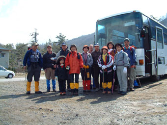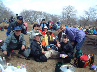 奥の山のピークが山頂 47名が参加