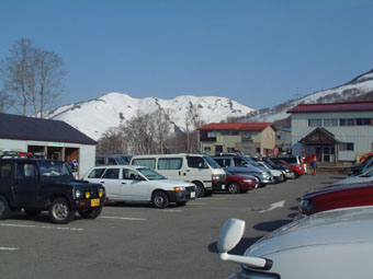 月山 スキー場の駐車場(後方は湯殿山)