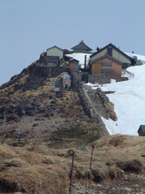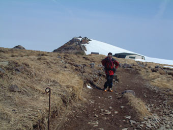 稜線は雪が無い(後方右は頂上小屋)