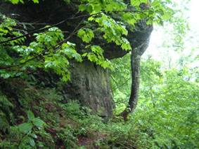 | 雨乞岩か 雨が降りしきるにも係わらず 岩の下は土が乾いてた |