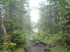 ガスで展望の無い山頂へ長居は無用と五分ほどで下山
