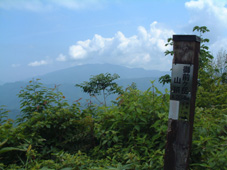 山頂は広く平らな草地で北方面だけ展望があり他方は林に遮られ展望が無い