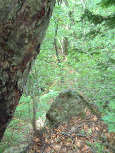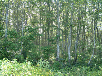 | ブナの二次林と思う → 山頂の東の面はブナ林に展望を奪われてる |