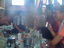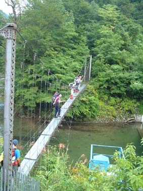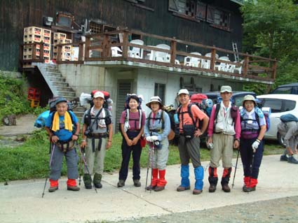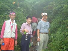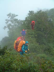 ![]() 朝日鉱泉前で TAKI・Joe・NABE・HAYA・HIRO・SUZUKI・TAI ![]() 朝日鉱泉 朝日鉱泉前から大朝日岳 ![]() 朝日川に架かる吊り橋 ![]() いきなりの急登 鳥原山の湿原 ![]() 一輪のピンクの花が崖の上に咲いていた ![]() 中央に鳥原小屋 湿原の分岐に留まるHIRO ![]() 鳥原山の山頂&HIRO ![]() 後方に小朝日岳&TAKI ![]() 小朝日岳と右に古寺山の稜線 ![]() 小朝日岳山頂 HAYA・TAI・NABE・TAKI・SEI・HIRO Joe・SUZUKI ![]() 熊越より振返り小朝日岳 ![]() 銀玉水で HAYA・TAI・HIR SUZUKI・NABE・Joe ![]() 大朝日小屋で宴会で〜〜す ![]() 24日AM6:50 小屋の前 SUZUKI・TAKI・TAI・HIRO・HAYA・NABE・Joe ![]() 大朝日岳山頂 強風と雨とガスの中 足元がふらつくメンバー ![]() ナカツル尾根(痩せ尾根を下る) ![]() ブナの巨木に張り付くHIRO ![]() 支流に架かる真新しい木橋 HIRO・TAKI・SUZUKI・NABE・HAYA・TAI・Joe ![]() しぶきを上げ下る沢水が豪快でした 総勢8名の参加により一路 大朝日岳へ 22日PM8:00郡山を出る 晴れた空 スカイブルーと大展望を期待して弾む心を抑え登山口にPM11:30に着く 夜空を眺め満天の星を指さし あれが天の川で大接近してる火星があれだよと にわか天文博士のHIROの説明 道中心地よい揺れとお酒に夢心地のSEIが ん〜〜〜〜と うなずく (^-^) 23日 AM5:00の目覚め 蕎麦めしを作り朝食 元気に朝日鉱泉登山口を朝日川に下り鳥原山コースへと出発だ!! 雲に被われた空 暑くなくて良いねと話ながら急登をグングン登る 標高を稼ぎ程良く緩やかな尾根歩きになるが 今度は金山沢へガクンガクンと下る せっかく稼いだ標高がとぼやくメンバー 沢を横切ると 登りのゴロゴロと石が並ぶ小さな沢歩きになり 登りきると鳥原山の湿原に架かる木道が現れた 山頂の湿原を左に回り込み鳥原小屋に到着 休憩をする。 小屋には管理人らしき姿は見受けられないがビール700円の張り紙を見つけ 何処にビールがあるのかな〜〜と見渡す 小屋の使用料金箱なる物が在ったので お金を入れればビールを飲めると??? 在るわけないビール騒動でした (>_<) AM10:20小屋を後にした 鳥原山への道は 階段状に道路が整備されている 有り難いことだと独り言 道路改良期日なる道標を発見 完了日が15年8月8日?と記されてる まだ出来たばかりと 改めて感心できた 鳥原山からは小朝日岳が目の前に古寺からの稜線が懐かしく目を移す あいにく遠望は利かないが薄れてた古寺のコースを思い出すことが出来た 上り下りを数回繰り返すと小朝日岳のピークへ 山頂は強風で飛ばされそうでした 山頂の窪地で昼食をとりながら 今日までは天候は崩れないはずと天を見上げるが 予想を裏切り 山頂を後にするころから雲行きが怪しく 大朝日岳は重いガスの中にスッポリと隠れてる 急な登山道を風に飛ばされながら下ると熊越の鞍部に着いた 振り返ると小朝日岳の鋭い山肌が切れ落ちて足元まで続いてた 視界が無い稜線を登ると銀玉水に着き 名水中の名水と思ってる水場に 降りてゴクンゴクンと喉を鳴らし飲み込む清水 本当に美味しいと言葉が一人で出てくる タンクを満タンにして最後の登りに付く 急登の砂走り 見上げるが 視界に入るのは目の前のメンバーの姿だけ この頃から雨と風が強くなる 胸突き八丁も無事にクリアーして稜線のケルンを過ぎると ガスの中から大朝日小屋が現れた。 小屋には15:30到着 管理人が出てきて今日は泊まる人は少ないだろうからと言う言葉にテン泊を断念し 小屋に入る 唸る風と打ち付ける雨音に小屋泊まりにして良かったねと相づちのメンバー 二階の奥に陣取り 宴会に突入した 管理人の話とは裏腹に 次から次ぎと登山者が訪れ小屋はギュウギュウ詰め 一階に行くと足場が無いほどの登山者 大朝日岳の人気を垣間見た ここからが問題だ!! 管理人がPM5;40分位に二階に来て開口一番 6時に成ったら静かにして 6時30分に成ったら寝てください ○▽□βψκμと全員がえ〜〜〜と 幾ら何でも早すぎるではないかいな??首を傾げる 山小屋での山談義 出会いを楽しみにしてる私は 管理人の横柄な態度と言葉に愕然とした 気を取り直し仕方がないと諦め所用をしに一階に下りると 秋田から来たと言う18名のグループに呼び止められ チョット飲んでいきなと嬉しい言葉 有り難うございますと甘え合流 秋田の銘酒に舌鼓 山談義に沸き メンバーのリーダーが仲間も呼んでと誘ってくれた 私が仲間を呼びに立つと 大きな声で ダメダーと怒鳴り声 見ると管理人が 後に立ち顔色を変えて睨んでいた え〜〜〜と言うと 集まると何時までも飲んでるからダメだと言うではないか(現在PM6時過ぎ) 私は呆れるやら馬鹿げてるやらで空いた口がふさがらない状況でした 秋田の○○山岳会(ご免なさい)の皆さん美味しいお酒を頂き有り難うございました お礼もそこそこに下山いたしまして失礼いたしました・・SEI 山小屋でのルールは大切と思います でも6:30分に寝てください 6時を回った時間に出会いた山の仲間と一献に!!水を差す 之って行き過ぎではと思う私は常識が無いのでしょうか残念な一時でした。 翌日風と雨の音に目覚め