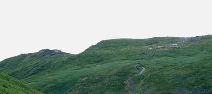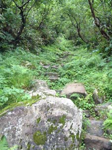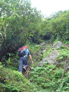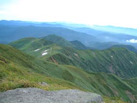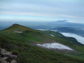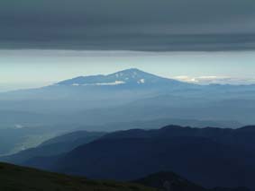 ![]() 湯 殿 山 月 山 羽 黒 山 ![]() 左上が月山山頂 右の小屋が鍛冶小屋 ![]() 石積の登山道 避難小屋手前の梯子場 ![]() 装束場の分岐 近くを流れる渓流 右中央に白い点(避難小屋) ![]() 熟したイチゴが美味しい ![]() 装束場の分岐を過ぎたコルより遠く飯豊y以東岳が見える ![]() 湯殿山の全貌 姥ヶ岳を左・中央に湯殿山・右に品倉尾根 ![]() ![]() ![]() 月山山頂で KEN・Sho・ またShoで(^-^)東京から来たシズカさん ・Sho・SEIです 後方に鳥海山 仏生池小屋前でSho 牛首より鳥海山 ![]() モックラ坂より鳥海山 木道より鳥海山 ![]() 仏生池小屋と鳥海山 仏生池より鳥海山 ![]() 夕暮れの鳥海山 ![]() 雨の日が続く中 晴れの予報を信じて出羽三山に行く 30日早朝4時に郡山を出発 東北道〜山形道と進み湯殿山にAM6:15分に到着 誰も居ない駐車場に車を止めて6:30に車道を登山口に向かう 湯殿山はAM8:00からの開門 静かな湯殿山神社の脇を通り渓流に泳ぐイワナを眺め雨に濡れた登山道を登り始めた 登山道の岩が滑る 高山植物に見とれてペースが落ちるShoとSEI 湯殿山の登山道はあまり使われないようで誰にも会わない ただ刈り払いがされてて歩きやすい 良いコースだ 月光坂の急登に係る梯子を登りきると避難小屋が現れる 綺麗な小屋だ小屋の中には水道が引かれてる 冷たい水が蛇口から!! トイレも完備してて登山者やお参りをする人には有り難い 装束場の緩斜面はお花畑だ!!白・ブルー・黄色・ピンクと咲く山の花 誰もが心を奪われるだろう 姥ヶ岳を正面に見て程良い汗をかき登る 青々とした品倉尾根は優しい線を描き母なる愛情を感じさせる 左に落ちた谷に目をやれば小さな池が点々と池を囲むように植物が生い茂る 登山道の地竹の中を覗き込むと赤く熟したイチゴがいっぱい実を付けてる 早速 熊さんご免なさいと頂く ん〜〜〜〜美味しい 数十個を頂きました (^_^) 姥ヶ岳の分岐に出ると月山スキー場から登ってくる人が凄い列を成してる この中に入ると大変とShoさんと話す が 写真を撮りながら登る私達に 東根一中??の数百人が直ぐに追いつき抜いて行く 他の登山者を入れたら何百人居るのか!! 此処はメーンコースなのだ 牛首より鳥海山を眺め 振り返ると大朝日岳や以東岳 その左奥には飯豊連峰と 余すところ無く山々が顔を見せてくれた 麓には月山湖や志津温泉も視界に入り高曇りの天候のプレゼントである 今日の泊まりの鍛冶小屋の脇を進み月山神社へ 500円の参拝料を治め神社で祈願 日頃の厄を払う (>_<) 神社の後に周り楽しみの時間が来る 宴会の開演ダ!! 360°のパノラマを肴に冷えたビールで乾杯 しばらくすると其処にスキー場から登って来たKENさんが現れる 私の頭を見て O〜〜眩しいと憎まれ口をたたき 待ち合わせた3名が揃い飲み直し 山談義といつもの会話に笑いが飛び交う ”Shoさんが神社の方を見て言う 綺麗な女性が写真を撮ってる” ”SEIが話す後から素敵な彼氏が現れるよ” そんな話を裏切り女性は一人でした 挨拶を交わし話すと志津温泉でシーズン中アルバイトをしてると!! 東京から来たシズカさんとShoさんのツーショット 記念の写真をカシャ 有り難うございました・・ シズカさんHPに寄りましたらカキコしてね (@_@) KENさんは1時間位の滞在で下山(愛する妻の元に帰りますと???) 11:15分〜14:30分のロング滞在でした 未だ小屋に行くには早いため仏生池まで行くことにした 途中 峰の変化や鳥海山の映り変わりに満足 こんな山旅も良いもんだとShoさんと語り合う 仏生池小屋でまだ飲み足りないのかビールを注文 再び飲む呆れた二人です 鍛冶小屋には16:40に入る 管理人の優しい言葉に迎えられた シャワーを使う事が出来る有り難さと 贅沢な個室に案内され 山菜料理の美味しい夕食に満足の小屋泊まりに成りました 31日 7:10小屋を出る装束場の避難小屋に8:10駐車場に9:30と雨の中を 足早に下山した 麓にある湯殿山ホテルで入浴後〜羽黒山へ 予定の三山を周り帰途に付く Shoさん KENさん シズカさん 鍛冶小屋の管理人さん有り難うございました 贅沢な山旅に感謝いたします ・・・・・・SEI・・・・・