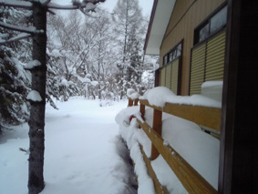 ウッドデッキまで雪が積もる(1月18日)