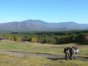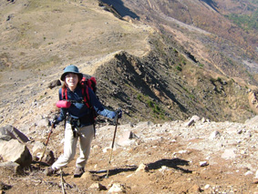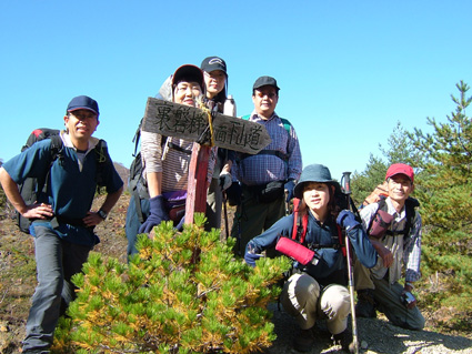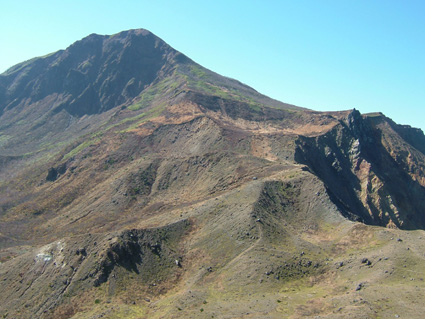 ![]() 裏磐梯登山口(裏磐梯スキー場)をスタート!! Mihorin・Hirorin・ojyou・AN・FURU・MASA ![]() 銅沼の分岐 分岐を過ぎると鏡のような池塘が現れた 記念写真のMihorin〜FURU〜Hirorin 快晴の中 緩斜面の登山道を進むメンバー 両脇のMihorin & Hirorinは独身であります (*^_^*) 山に理解の在る男性を募集中 要望事項多々あり m(_ _)m 詳しくは HP管理者まで宜しく ![]() 藪道にある道標を過ぎると噴火口の稜線が確認できる 逆光で輪郭がハッキリしないが荒々しい山容は裏磐梯登山口を訪れた人のみの眺望である ![]() 火口原に下り岩のゴロ道に出ると味の在る道標が目に付いた 左からAN・ojyou・Hirorin・FURU・Mihorin・MASAの6名が青空の下で大自然の歓迎を!! 火口原は広い大地 ガスが架かれば行く手は??地図と磁石が無ければ無理と語りかける ![]() 裏磐梯登山口と川上登山口の分岐 此処を過ぎると急登の連続 手すりの付いた登山道 正面に天狗岩を見ながら登る 左右の灌木林には季節の贈り物キノコが顔を出してる クリタケやムラサキシメジを少々頂き晩のみそ汁の糧にしました ![]() 櫛ヶ峰に登るMihorin 櫛ヶ峰より磐梯山 1818.5m ![]() 奥に赤埴山1430m 噴火口の外輪 次のページへ |