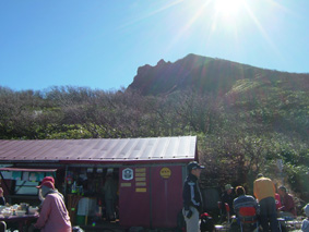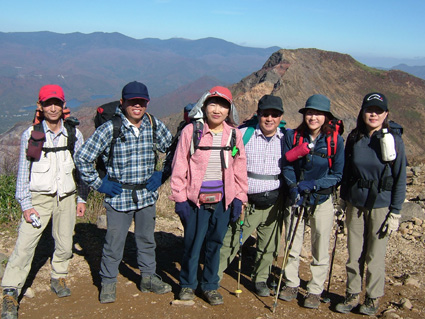 ![]() 櫛ヶ峰に着いた Mihorin & SEI 他のメンバーは一足先に弘法清水へ 私達が山頂で休んでるときは皆さんは小屋で休憩 山頂は360°の展望 飯豊山の雪も有視界OK 近くの峰越しには朝日連峰が覗ける 眼下には沼の平 火口原 猪苗代湖 檜原湖 小野川湖 秋元湖 と麓の町まで望め 磐梯山山頂には多くの登山者を確認できた。 ![]() グランデコスキー場が西吾妻山の山腹に描かれ宝の山からの遠望を楽しむ 分岐に着いたMihorin余裕の笑顔でポーズ (^o^) ![]() 弘法清水小屋で昼食 小屋越しに磐梯山のピーク 青空が眩しい 弘法清水小屋のご主人に 総勢7名がナメコ汁をご馳走になる ご主人様 奥様 何時も本当に有難うございます ![]() 下山前に記念写真 後方は櫛ヶ峰 櫛ヶ峰の噴火壁 ![]() 川上コースを下る 落ち日に染まる秋模様 黄金色の木々が光を跳ね返す 時を惜しむ晩秋の囁きがこだまする 登山道に落ちてるアケビの実 近づく冬を感じる 23日の紅葉宴会に続き24日は磐梯山登山 総勢12名の参加 (登山者は7名) 笑いと食べ道楽の二日間 皆さんお世話になりました 之からも宜しくお願いいたします。 ・・・・SEI・・・・ 戻 る |
