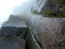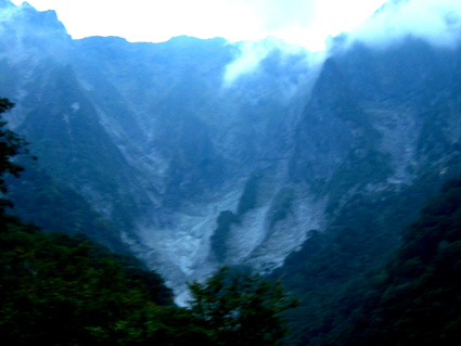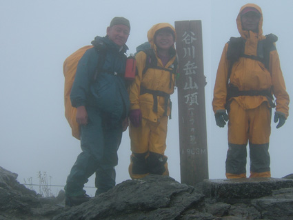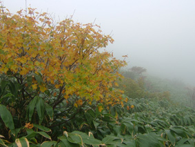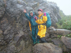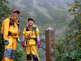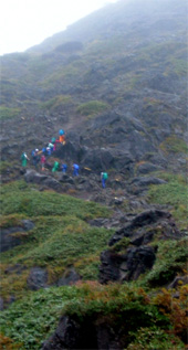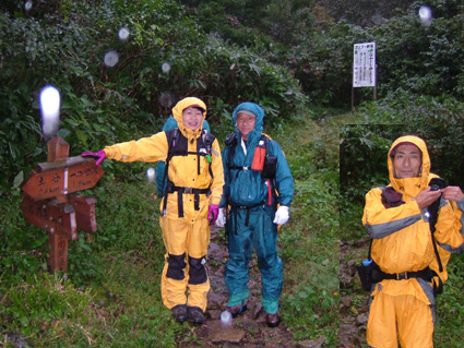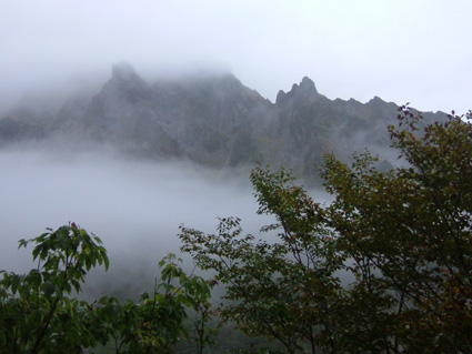 ![]() 夕暮れのマチガ沢 一の倉沢 ![]() 一の倉沢 2日の夕方 谷川岳登山口に到着 明日の天候が不安定なため一の倉沢まで足を延ばす 日が落ちる前のマチガ沢と一の倉沢を写真に治めることが出来た 翌日は天気予報の通り 一日中雨でシャッターチャンスは無かった。 ![]() ![]() ![]() 駐車場でテン泊を楽しむMASAさん&Ojyouさんです お酒を飲むのはSEI一人 可愛そうとOjyouさんが付き合ってくれた MASAさんはコーヒーで乾杯!! 登山口のOjyou・SEI・MASA ![]() 巖剛新道は登り初め沢が登山道に使われている しばらく展望のない林を進むと第一見晴台に着く マチガ沢が一望できる 峰に係るガスが谷川の壮大な岩峰を隠すように下りてきた。 揺れ動くガスの中から瞬間 顔を出してくれたノコギリ状の山容 ![]() 西黒尾根分岐より天神尾根 尾根伝えに見上げる稜線 分岐にてOjyou & SEI 視界が開けるように成るとクサリ場や梯子が在り 谷川岳のイメージが強く出てきた 本来ならマチガ沢の切り立つ岩壁が目の当たりに出来ることだろうと雨雲を見上げる 高度恐怖症のSEIは足元が見えなくて歩きやすいと強がりの一言 写真で見た山容を心に写し 見えない谷を見つめる姿が3つ !! ![]() Ojyou & MASA 並べたような岩が行く手を!! 山頂の道標 分岐を過ぎるとガレバの連続 大岩やザンゲ岩が続く 見えないピークを辿り登って行くと大きな道標が現れた 間もなくトマノ耳 1963.24mに着いた ![]() 岩場を登る登山者 トマノ耳でSEI〜ojyou〜MASA ![]() オキノ耳のMASA・ojyou・SEI (1977m) 肩の小屋でくつろぐMASA・ojyou・SEIオキノ耳まで足を延ばした 寒く視界がないピークを後に肩の小屋に着く 寒いからだを中から暖めるには温かいラーメンが一番と管理人の馬場さんにお願いする 笑顔の対応に何かご褒美を頂いたような温かさを感じる管理人の姿 ojyouがお湯を頂けますかと 訪ねると快い返事とMASAさんの食材にまで真心のお湯が注がれた 当然のようにお酒を注文するSEI メニューには無いのだが紙コップに分けて頂いた日本酒を 恵比寿顔にてアー旨いと注ぎ込む奥には五臓六腑にしみこむ感謝の味がありました。 ![]() 小屋を後にし階段状に整備された登山道を下る 此処でも視界は無い天神ザンゲ岩〜天狗のたまり場と下り 笹の山肌が終わる頃には木々の丈も身長を超すように成る 紅葉と笹のバランスが色彩を強調 大岩にてSEI・ojyou ![]() 避難小屋には多くの登山者が休んでいた 私達は休憩を取らずに下山 濡れた登山道の木々は表情を和らげ 残り少ない秋の日を承知してるかのように色つき始めていました。 天神平の分岐にてMASAさんが腹の減り具合に合わせるようにパンを補給 ojyouさんはポーズを作り 被写体に笑顔を振りまく和やかな下りになる ![]() ロープウェイの山頂駅は日曜日にも係わらず閑散としてる 冷たい雨に打たれた谷川岳登山も山模様の移り変わりと人情味あふれた多くの感動を頂き ロープウェイと共に最終駅に近づいていた。 ![]() 土合駅にて記念写真を撮りマチガ沢に止めてある車までタクシーにて行こうと乗り場に行くが タクシーは居ない 困り果ててると近くに居た年輩の男性が私の車で送りましょうと 思いも寄らぬ言葉をかけて頂いた 谷川岳登山に来て冷たい雨に打たれ展望のない尾根を歩き!! 空想の景色を眺め感激をし 肩の小屋で(TOPにリンク)管理人の馬場さんの人柄に触れ 下山後 心温まるお言葉と共にマチガ沢まで送って頂いた事は忘れることは無いだろう・・・・(@_@) 出合いと感動と人情を有難うございます 登山という1日だけではない1日に感謝致します MASAさん ojyouさん 馬場さん 送って頂いた優しい男性さん 有難うございます・・・また来ます谷川岳の地に・・・SEI |