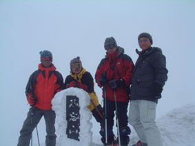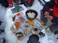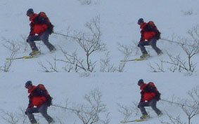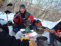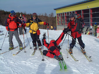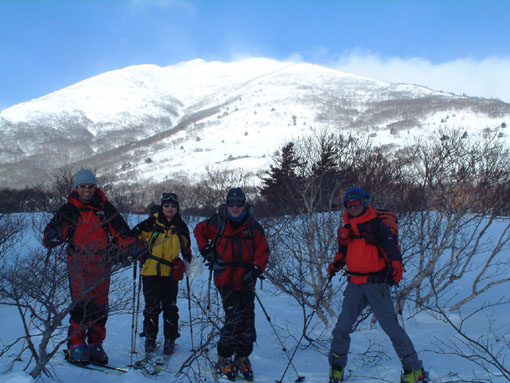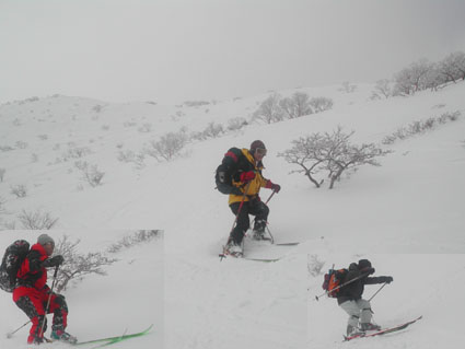 ![]() ゲレンデよりスタート 地図を見るAN!! を 待つメンバー Sho Masa すかがわ2嬢 AN (@_@) ![]() 中央は馬ノ神岳 1551m ![]() ダケカンバに強い日射しが差し込む ![]() 1362mの稜線(カシミールより) 霧氷が稜線の厳しさを諭してくれた Sho〜すかがわ2嬢〜AN〜Masa ![]() Masa・すかがわ2嬢・Sho・AN・SEI 山頂にてAM11:10 山頂からの展望は要られませんでした (>_<) ![]() 不忘の碑(中央左) 稜線にて 不忘山のピーク ![]() これより滑降開始 すかがわ2嬢・Masa・Sho・AN ![]() 中央の斜面を下る ![]() AN すかがわ2嬢 SEI Masaさん提供写真 ![]() ん〜〜〜だ〜れ こちらはMasaさん ![]() ![]() ![]() ![]() ![]() ![]() いつもの時間で〜〜す ![]() 左からMasa・宮城の人・同じく78才・SEI・すかがわ2嬢・AN 此処でも寝てる人が居た (^-^) 白石スキー場のハウス Shoさんの計画で宮城蔵王白石スキー場より不忘山(御前岳)に山スキーに訪れた 朝の内は晴れていたが山頂に着く頃はガスが立ちこめ残念ながら展望を仰ぐ事は出来ませんでした リフト終点にて山頂を見ながら準備をするメンバー ガスが動きピークが現れるのを見て今日は素晴らしい蔵王連邦の山並みを拝むことが出来ると 張り切って登り始めた ダテカンバの幹に強い日射しが跳ね返る 初めて訪れた山だが登山者が多く 愛されてる山で在ることをしりShoさんの計画に感謝感謝感謝 m(_ _)m 山頂を目指し林の中を進む 最初は緩斜面が続き皆さんハイペース 前を行く登山者のトレースが 踏み固められ歩きやすい為のハイペース??か・・・・ 雪の原に照り返す日射しが容赦なく体に浴びる 汗かきのSEIは早くも防寒着を脱ぐ たらたらとしたたり落ちる汗 ん〜〜タオルが無い 準備不足のSEIにShoさんがタオルを差し伸べた 帽子を取り稜線に出るとさすがに寒い SEI耳当てを付けて防寒を・・・ 皆さんは汗を拭くでもなく涼しい顔をして登る 元気なお嬢は余裕で何時もの足取り!! 稜線は角度を増しシールが滑る 其処でお嬢が一言 SEIさんのシールは滑らないのではと (^_-) きついお言葉 自信のシールが何故滑る 楽しい会話の中 AM11:10山頂に着きました 山頂は数個の標注があり 標注の前で写真を撮り ガスの為 見ることが出来ない峰を思い浮かべ 心の目で見ましょうと お嬢のかけ声に暖かい微風が流れるのを感じた。 休憩もそこそこに下山する事になり 麓を見渡すと斜面や灌木そして予定のコルを望むことが出来る Shoさんを先頭に木々の頭が出てる斜面を滑降 疾風のように下るSho 私もと お嬢がスーイスーイ ANさんが格好良くスッテンターン Masaさんはしなやかな曲線を描き絵になる滑降 SEIはShoさんの真似をして雪だるま 楽しい楽しい大斜面の滑降で在りました (^o^) 予定のコルを南に寄りすぎ灌木林を越える羽目になる 少し寄り道をしたが間もなく昼食の場所をセット 豪勢な野外フルコースと早変わり致しました 山頂でお会いした地元の二人が私達の宴会の席に寄ってくれた 年輩の二人にお年を聞くと 78才ですと まー元気な事 毎週 登山をしてるとのことでした 話を聞き負けじと私も60うん才ですと言うと 若いですね・・・(>_<) 本当はまだ56才です ・・ガク そんな素晴らしい不忘山 山スキーの1日に成りました 帰りに白石湯沢温泉(やくせん)に寄り 体をほぐし芯から暖まる 帰路はMasaさんの運転で 私達は相も変わらず車中宴会モード 楽しい会話のお嬢様 有り難う山 Masaさん 本当に感謝しています 有り難う山 白河夜船のANさんShoさん 車中にお酒をこぼさないようにお願いいたします ・・・来週は西吾妻山へ山スキーに行きます・・・