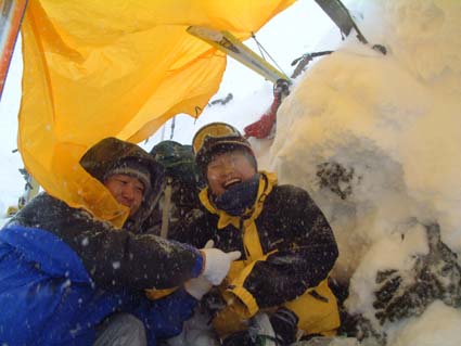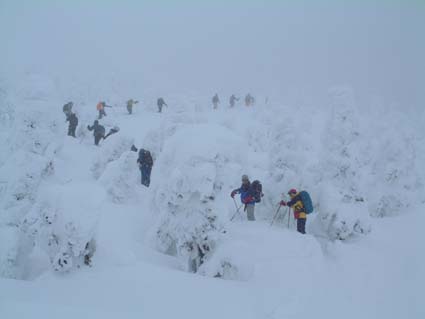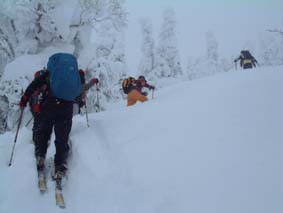 ![]() 団体さんの後を登る(圧雪されて楽です) 休 憩 Sho上とJoe ![]() 列をなし登るスキーヤー ![]() 大きなモンスターに隠れる ![]() ![]() ![]() ![]() 降りしきる雪雪雪 見る見るうちに埋もれる食材 ![]() 戯れるJoeとojyou ![]() 腰ま潜りラッセルする新雪(スキーを履いてます) ![]() Joeさん提供写真 埋もれて動けないSEI (腰まで抜けた空洞にスキーを外し脱出した) ![]() PM3:30分頃のJoeまだ余裕が在ったが?? 間もなく現実は訪れたPM5:??頃 ![]() 大雪の中 体力を付けるためモクモクと食べるShoとメンバーPM6:?? ![]() ゲレンデを滑り降りてグランデコセンターへ着く(*_*) 何事も無かった様にバンザーイ PM8:?? ![]() Sho〜SEIーすかがわ2嬢 無事に帰還して安堵の表情 (Joeさん提供写真) 新雪が1m位積もる山腹 西大巓に山スキーに訪れる 朝の内は日射しもあり稜線もクッキリと現れ予報が外れ好転したのかなと喜び勇んで登山開始 前を行く団体さんの御陰で圧雪されたトレースを使い順調に高度を稼ぐ 途中までは大きなツリーに日が差す最高のコンデションで上着を脱ぎ汗抱くの行程になる 1800m位まで登ると雪が深々と降りだし先ほど脱いだ防寒着を付ける 急変する天候にメンバーが話す 予報が当たったねと!! 山頂には12:30に着き休憩を13:30まで 既に山頂にいるのは私達だけ 180°方位に滑降下山の予定を尾根を谷側に下りコースを外れる トラバースして 尾根に出ようと試みるが腰まで沈む新雪にどんどん谷筋に 1650m付近で立往生 PM5時 小さな雪崩が発生 越える尾根は見えるが 勾配の在る深雪は身動きがとれない Shoさんがシールを付けて途中まで戻ろうと勇気の決断 1800mまで戻りGPSの軌道を確認しコースを270°にとり稜線を目がけてラッセルする Sho〜Joe〜すかがわ2嬢〜SEIと代わる代わる腰まで潜り力強いラッセルが続く 一人として慌てることなく落ちついた行動!! 非常事態(ビバーク)の装備(食料・燃料・ツエルト二張り・スコップ・ライト・等)が落ちついて 行動できた要因と思う。 尾根筋に出るとトレースを見つけ一安心し休憩をとる すかがわ2嬢さんの果物やパンなどモクモクと食べるメンバー 美味しい!! 途中で行動食をほおばりながらのラッセルでも体力減退が激しい・・・ ”体力限界前の休憩と補給は欠かせない鉄則と改めて思う。” 尾根筋のトレースを下るが雪で所々消えてる下り始めてから4時間以上が経ち 新雪は既に30cm位積もり行く手を阻むのでした PM7時過ぎにゲレンデに出る ゲレンデも新雪でスキヤーの残した跡も無く如何に大雪か 思い知ることが出来た ヘッドライトの灯りでゲレンデを滑り下りたのは PM8時に成ろうとしてた グランデコハウスに着き渇いた喉を潤すカンビールは 言葉にならない幸せな安らぎの空間に案内される時間になりました。 駐車場に残された一台の車 ビバークを余儀なくされてればと考えると 慎重の上に行動と判断をしなくては成らないと教えられた 冬山の1日でした Shoさん・Joeさん・すかがわ2嬢さん・素晴らしい判断と行動に感謝致します これからの登山に役に立つ教訓と致します ・・・SEI・・・ |