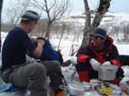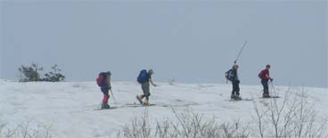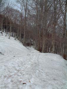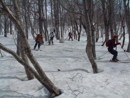 ![]() AN〜INO〜OHG〜Ojyou〜SEI リフト終点より後方は磐梯山 後方の雪景色は雄国沼を縁取りする小ピークの峰 ![]() シュプールを治めブナ林を滑降するメンバー 先頭から Ojyou〜OHG〜INO〜AN ![]() ![]() ![]() ![]() 滑り上手に見えるかな???(>_<) (@_@) (^_^) OHG AN INO Ojyou ![]() 雄国沼の堰堤 & 休憩舎 (くつろぐメンバー) ![]() 猫魔ヶ岳の連峰 ![]() 雄国山の展望台 ![]() 雄国休憩舎と雄国沼 滑降前のメンバー Ojyou・AN・INO・OHG ![]() ![]() ![]() ![]() ![]() ![]() ![]() 楽しい時間が来ました ![]() 夏道の登山道が現れるのは? 今シーズン最後の裏磐梯猫魔〜雄子沢コースへ山スキーに来た 猫魔スキー場は最後の滑りを楽しもうと大勢のスキーヤーがゲレンデに溢れていました。 リフト終点よりザラメの雪原を雄国沼へ向け滑り下りる 山頂付近は灌木林で 途中よりブナ林に変わる 間をぬうように右左と走るスキー 木々は新芽を膨らませて弾けそうに早春を待ちわびていた 雄国沼は氷りが解け所々に水面が出来 近寄ることが出来ない 間もなく新緑の鮮やかな山々の季節がやってくる 誰も居ない雄国休憩舎 私達は燦々と落ちる日射しを贅沢に浴びて一時の安らぎの世界に導かれた 沢や窪地の雪は解けて空洞に 中を覗くとコンコンと湧き出る水 磐梯山を宝の山と位置つけ檜原湖に恵をもたらしてくれた湧き水 自然の摂理に感謝致します。 休憩舎を後にハッカ山を目指すが露出した岩が行く手を拒む コースを雄国山に変え気持ちよく登るメンバー なぜか坪足で追いかけるSEI 稜線の所々に黒い山肌が現れて雪解けの早さを感じる 稜線より見下ろすと雄国沼や休憩舎 縁取りされた連なるピークが それぞれの思いを現して輝いていた 猫魔ヶ岳と雄国山のコルで休憩 持ち寄った食材に手が重なる 焦げたさつま揚げが美味しい 特に今日はビールが 暑い日は之に限る!! 心地よい春風 ? が通り抜けて行った 雄子沢の下りは緩斜面のため滑りが悪い 小枝が雪をはね除けて邪魔をする スノーブリッジが消えて沢越えが出来ない箇所が現れた ジャボジャボと沢を渡るSEI 冷たい!!靴に雪解け水が入る 見ていたメンバーが遠巻きをして沢越え 事なきをえた。 磐梯山のスノーシーズンは間もなく終わりを告げるかの様に 景観が変わっていた。 |