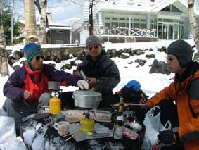 ![]() ゲートが開かない(MASAさん) ブナ林公園 雪の降る真夜中(テント設営)Joeさん ![]() ![]() ![]() テント内の温度が上昇レンズがくもる MASA〜AN〜Joe〜SEI ![]() 24日の早朝(ブナ林公園前) 冬眠から覚めたJoeとAN ![]() あら〜やっちまった (>_<) 新雪 ![]() ![]() ![]() 諦めて朝食を頂く(MASAさん特製サイコロステーキが美味しい) AN〜MASA〜JOE〜AN ![]() 鳥海山は雲の中 低気圧に巻き込まれ鳥海山のゲートでテン泊し翌日山頂を目指し巻き道を捜すが雪と悪路に 行く手を拒まれあいなく断念し撤退 日本海の荒波を眺め活きのいい刺身とお姉さんに元気つけられて月山に向かう しず温泉にある民宿いびすやで後続のOHG先生とojyou様を待つこと五時間 飲みつかれてうとうとしてるところに到着 笑いの中に宴会の始まり 明日は姥が岳〜湯殿山の山スキーを楽しむぞと意気込み眠りにつく 翌朝窓を開ければ外は深々と降る 雪 雪 既に30cmは積もってるだろう ・・・・・・ 帰り道タラの芽を頂くANさん ![]() ![]() 蔵王スキー場に移動ゴンドラにて地蔵山頂駅へ(合流したOjyou&OHG) Ojyou〜SEI〜MASA〜AN〜OHG〜Joe ![]() 季節はずれの寒波の落とし子(樹氷が綺麗でした) MASA〜SEI〜Ojyou〜AN ![]() 蔵王のツーショット MASA〜Ojyou ![]() ![]() ![]() 蔵王ゴンドラ駅の駐車場脇にて昼食の面々 23日の夕方郡山を出発 大斜面の鳥海山を滑降する姿を思い浮かべ張り切って出かける 雪のため 回り道を繰り返し矢島口の登山口に向かう なんと登山口10km手前に進入禁止のゲートがあり封鎖 24日夜中の午前一時 外は雪がしんしんと降り続く(テント泊) 翌朝(鳥海高原矢島スキー場から回り込むが悪路にて断念) 厚い雲に覆われた鳥海山方面を眺めて月山に移動 車窓より鳥海山を眺めるが麓しか望めず・・・・(>_<) 月山(しず温泉に夕方到着)外は雪 民宿いびすやにて25日の予定をたて宴会突入 (^O^) 25日朝食時に民宿の女将にシャトルバスの予定を聞くと 今日のスキー場までの道には積雪50cmで除雪のため月山スキー場までバスが 動くのは12時過ぎると・・え〜〜 ・・ ドハヤー 月山もペケかと (>_<) と言うことで鳥海山〜月山は低気圧に拒まれ会えなく撤退致しました 同じような方は居ませんでしたか・・・トホホ 相哀れむ (T_T) 帰りに蔵王スキ場にてゲレンデスキーを楽しんで来ました。 尚 鳥海山矢島口のゲートが開くのは28日との事でした |