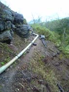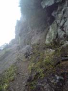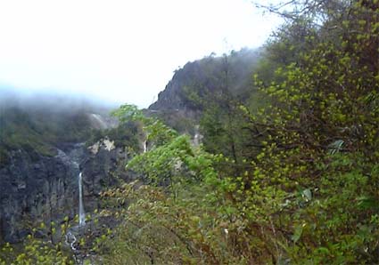 ![]() ![]() 展望台より白糸の滝 山の姿は雲の中 船明神山への登山口 ![]() 沢でワラビを採る 崩れた登山道(危ない) 沼尻温泉へ湯送菅 ![]() 白糸の滝(近距離より)・・・携帯電話カメラです ![]() 湯ノ花採取 元湯の祠 ![]() 元湯より湯送 旧元湯跡 午前中の講習会(救急救命)を終えて午後沼尻登山口に来た 雨の降る中 スキー場を通りゴロゴロした林道を進む 今日は安達太良山の山開き だが登山者には会わない 私達二人は途中山菜を採り登山口へ 階段の登山道を進み展望台へ ガスが架かり山の姿は無いが滝は鮮明に見えた なぜか引かれるように登山道を進むグングンと滝が迫る 滝まで来ると足が勝手に湯本方面へ 雨がしとしとと降る中 気持ちが晴れ晴れと天候と裏腹に 途中の湯送菅のジョイントから お湯がゴボゴボと沸きこぼれてる 手を差し伸べ湯に触れる 熱〜〜い 60°位は在るだろうか 惜しげもなく谷底へ流れる温泉 谷を流れる温泉は ゆらゆらと湯煙を上げ下流へと消える 崖崩れの跡を慎重に進む 今にも落ちそうな巨大な岩が足元をくすぐる 怖い Toyoさん 私は高い所と水は恐怖と意味真に話す 間もなく湯ノ花採取小屋に辿り着いた 硫黄の臭いがきつい沼の平らから流れ込む渓流は 大露天風呂と化していた 一組のハイカーに会う どちらまでと聞くと谷坪で温泉に浸かって来ましたと 顔を赤らめ体から湯気(これは大げさ ^^; )を出して下山してきた 湯本の祠に手を会わせ 旧湯本の跡で記念写真を撮り下山 途中で湯送菅の近くは温かいせいかワラビの育ちが早くヒョコヒョコと背丈比べをし 私達の山菜採りの手助けをしてくれました。 下山後 沼尻温泉に在る田部井先生のペンションに寄り温泉浴を楽しみ 美味しい生ビールで疲れを癒し今日の1日を終えることが出来ました。 Toyoさんありがとう・・・・SEI 戻る |