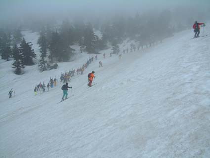 ルートファイデングをするANさん シールを外し滑降準備 ![]() 三浦敬三さんと八甲田山を滑ろうの団体さん ![]() 大岳ヒュッテ ヒュッテ前で滑降準備(ガスで視界が悪い) ![]() 途中で記念写真 M&Mさん・ANさん・Ojyou・OKAリーダー ![]() 湿原のお花 ![]() 碑の前でAN〜SEI ![]() ![]() ![]() ![]() ![]() ![]() 夕食の一時 Ojyou〜Mさん〜Mさん ANさん〜(お膳で〜〜す)〜OKAリーダー 天候が気になる1日に成りそう ロープウエーの駅に着くと早くも大勢の登山者が乗車待ちで並んでいた 列をなし並んでいると後で話し声が ん〜〜 なんか聞き憶えのある声だぞ^と振り向くと な なんと 南会津の山小屋オフ会でご一緒させて頂いた小田さん5名のメンバーが 並んで居るではないか お互いに あれ〜〜 と ”オドロキ桃の木山椒の木” 2週前にオフ会が在ったが都合で行けなかったSEI 此処でお会いできるのは神様のプレゼントと!! 短時間では在りましたが歓談できました皆さんありがとうございました。 私達は ガスが架かり視界が悪い中 山頂駅を出発 今日のリーダーはANさん・・・・ リーダーのOKAさんが読図の勉強にとANさんをリーダーにしてくれたのです 試行錯誤のルート設定に悪戦苦闘 基本に忠実なANさん コースを外れると基本通り登り返しを命令 (>_<) 良い勉強に成りましたとOKAリーダーに感謝感謝のお言葉でした。 下山後 麓でふきのとうを採り宿に戻る 途中にある銅像茶やのおでんが一味違う味噌タレで美味しく頂きました 今日の箒場岱の1日は今までに無く楽しく また勉強に成りました。 OKAさんありがとうございました。 |